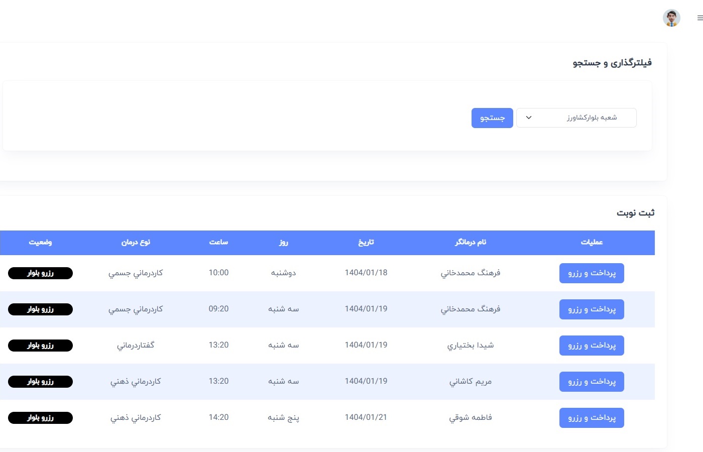جلسات درمانی هماهنگ شده و انجام شده،سوابق مراجعه جلسات،گزارش پرداخت های مالی،فیش حقوقی